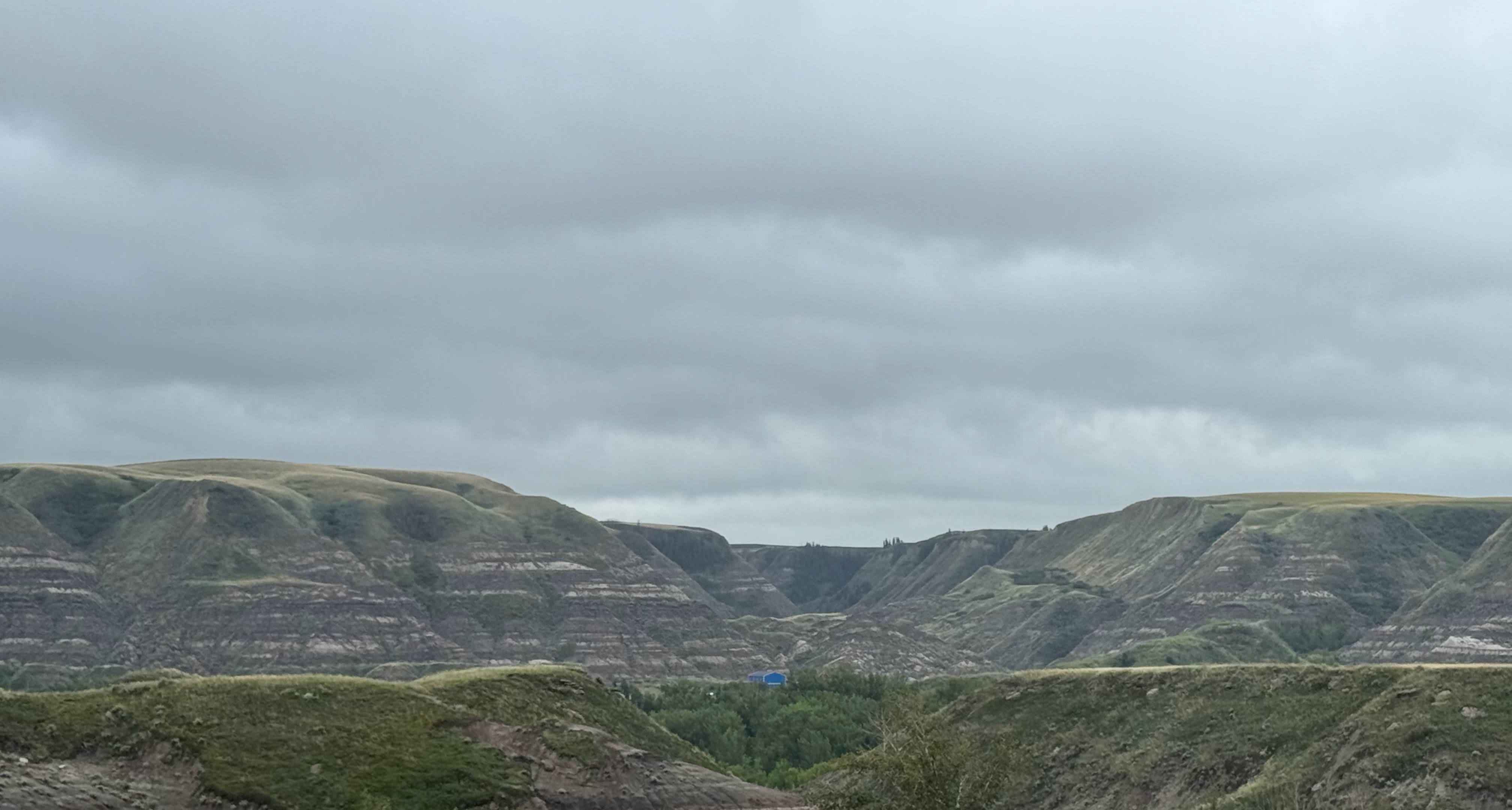 We had a great time exploring the museum and it was a really nice way to get to know Lies’ kiddos in a relaxed environment. The drive home from Drumheller was no less visually fantastic than the ride out. Thinking we taking the route of a scenic driving tour advertised on a road sign, we turned down a dirt road and drove. And kept driving. As the wind picked up and the road edges became akin to quicksand due to all of the recent rain, I was reminded of how many times Lies and I had followed road signs and ended up lost in the middle of nowhere. As every adventure that started with a random road sign ended well, I trusted the process and enjoyed the views. I’ve visited very rural areas in the US but never the prairies of the Midwest, so while endless fields of corn I’ve seen, nothing is quite as magical as the prairie grass blowing in the breeze. The grass comes alive and ripples like water and the horizon is endless – going on forever.