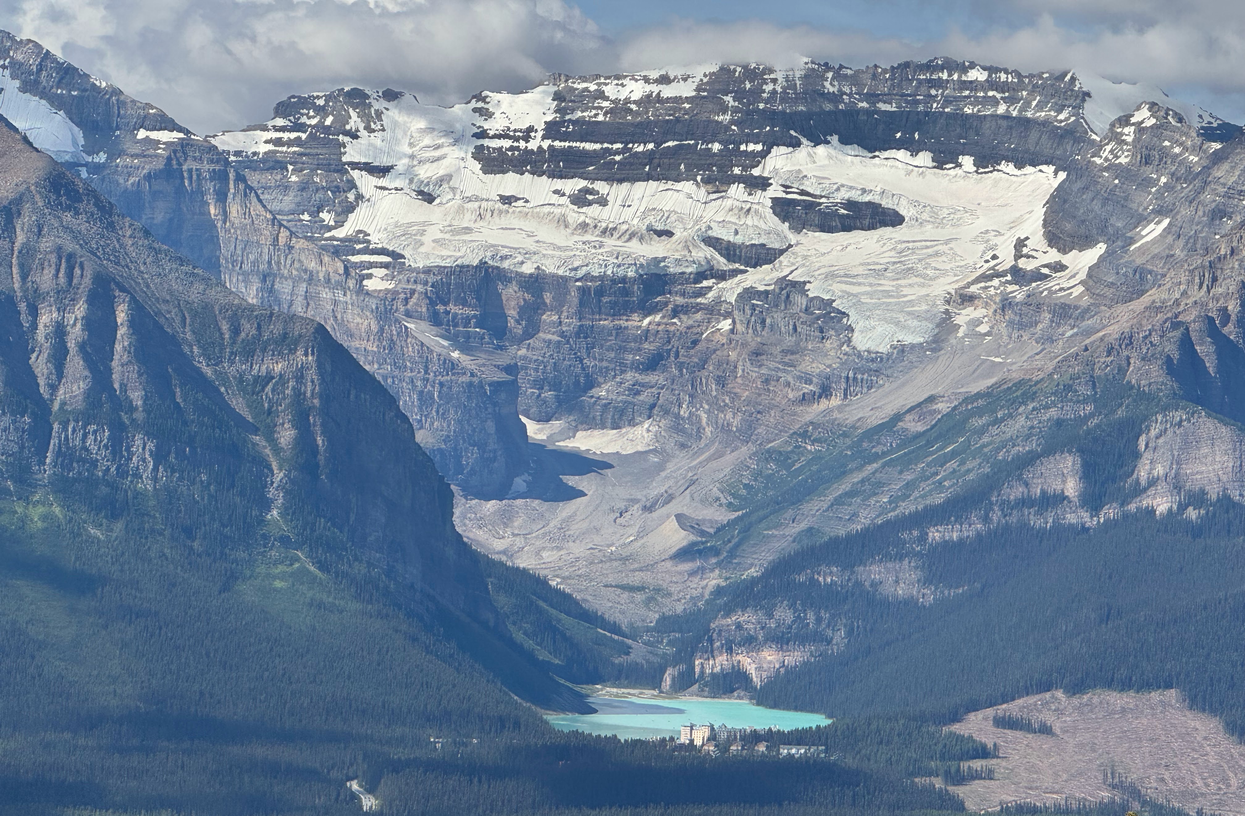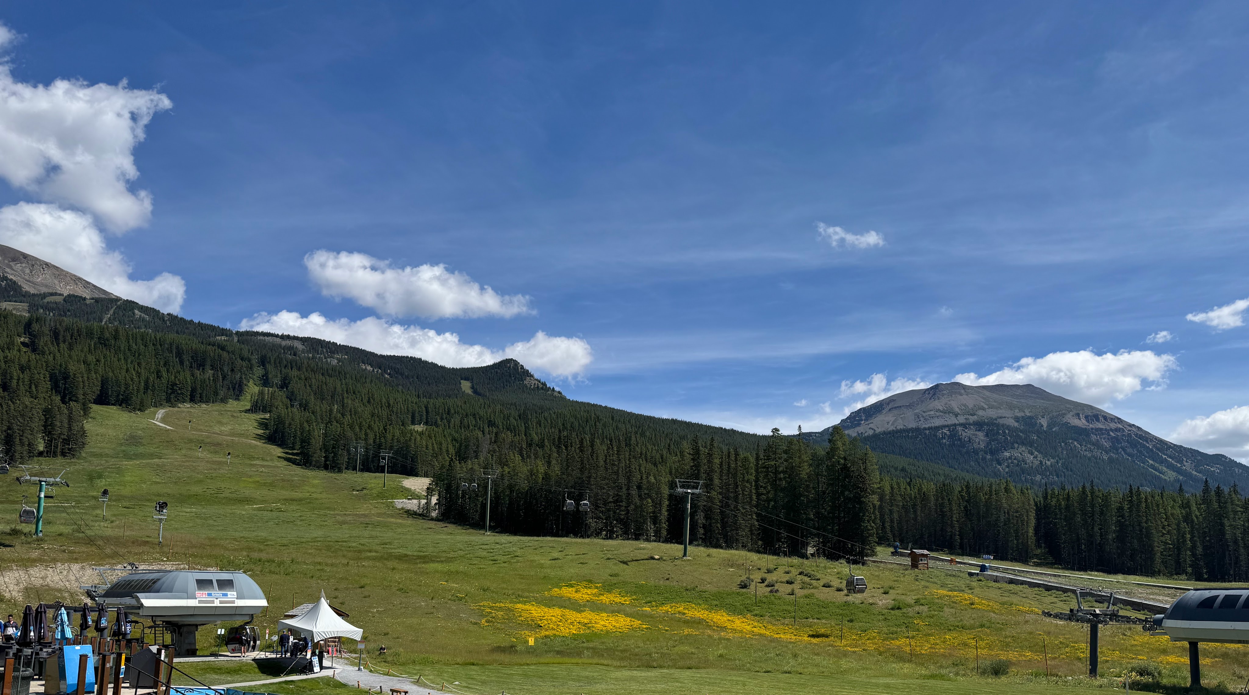 Our first stop in the park was where Tim and Lies were married. There was a wonderful view of Lake Louise and we rode the ski-lifts up to an unobstructed overlook that was breathtaking. We walked a very short distance down to a restaurant and enjoyed cocktails with the most spectacular view of the valley. Returning to the lodge, we sat out in the sun enjoying lunch while the kids played giant checkers. I was reluctant to leave the beauty around us but was assured, it was for a good reason.