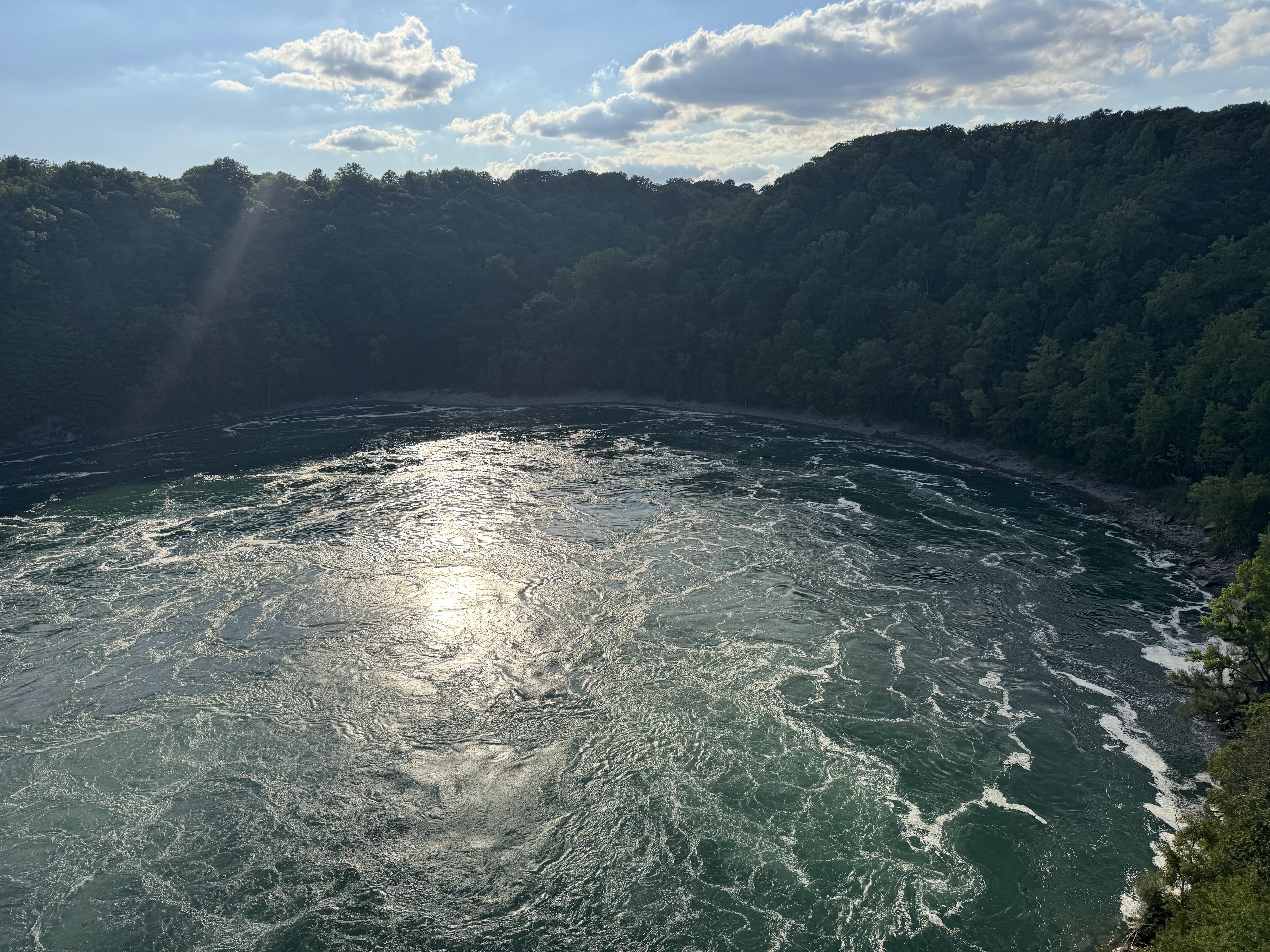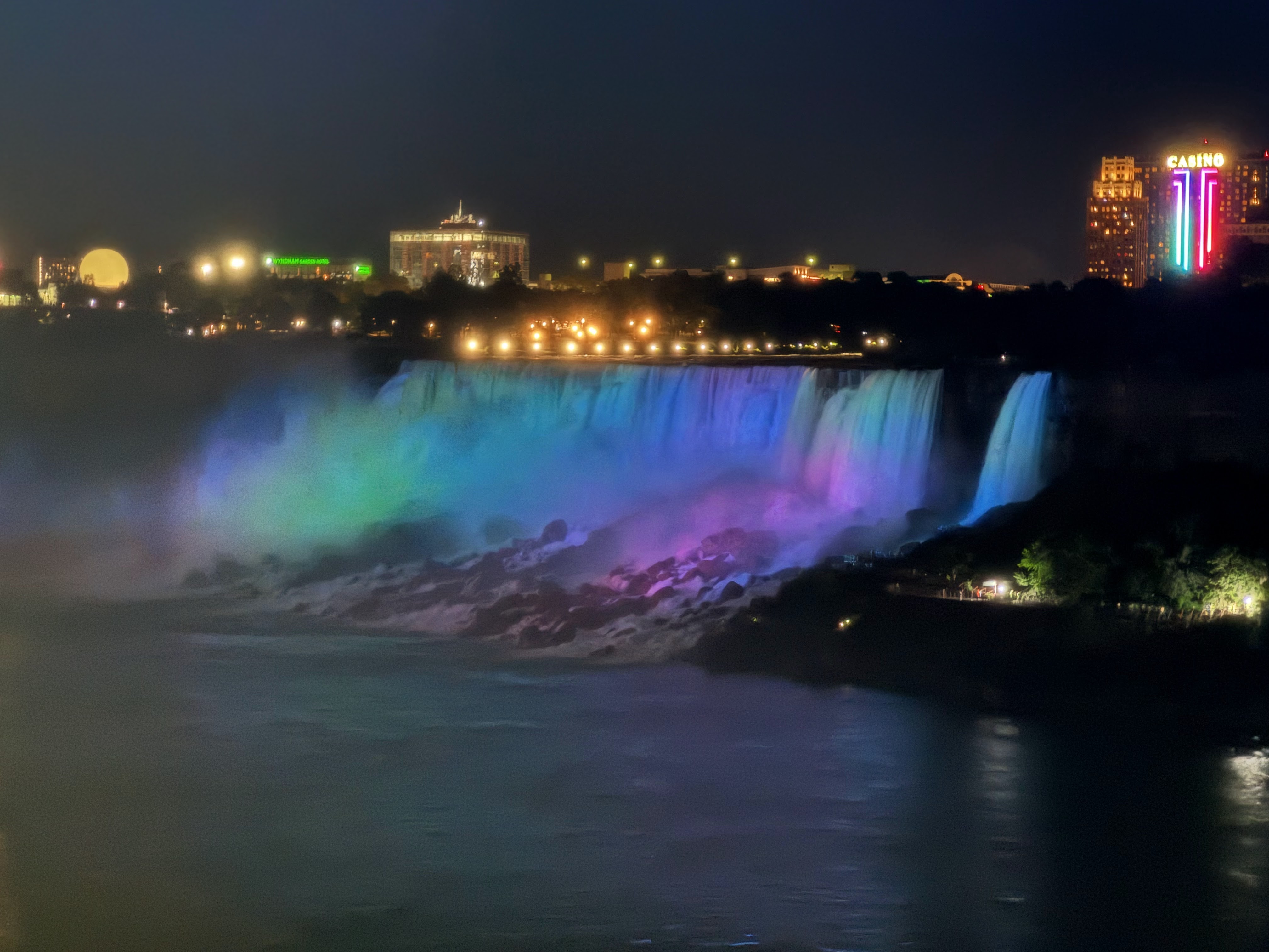 On our way back to the car, we enjoyed the falls light show. Both the US and Canadian Falls are lit from the Canadian side and they alternate through various light schemes which is incredibly cool. Again, I lamented not getting a hotel on the Canadian side as it would have been really cool to keep watching. Alas, we headed back to our car and the US. This time our GPS took us to the Lewiston-Queenstown Bridge (I assume because the Rainbow Bridge was absolutely jammed). While much less trafficked than the Rainbow Bridge, it still took about 45 minutes to cross.